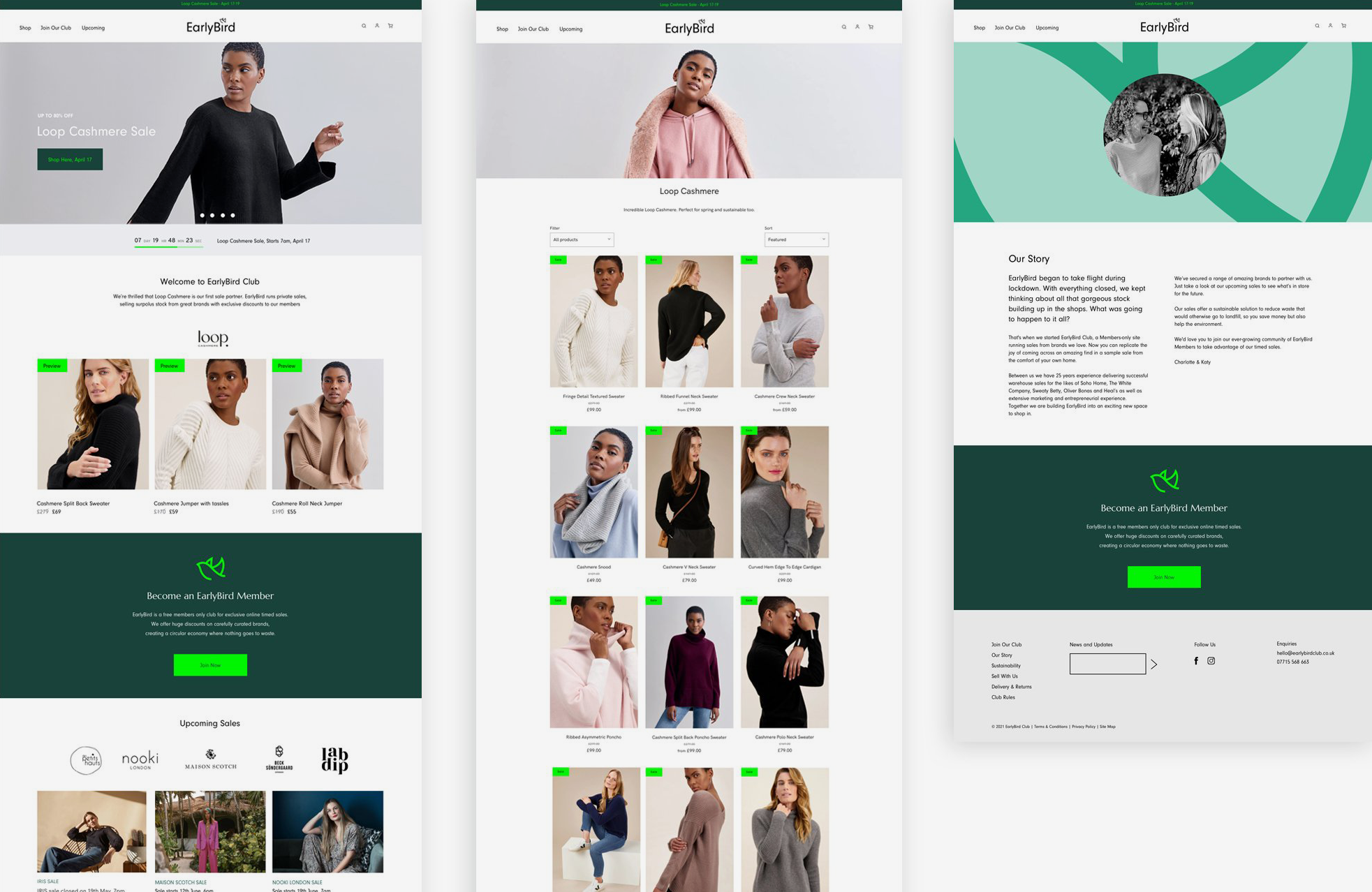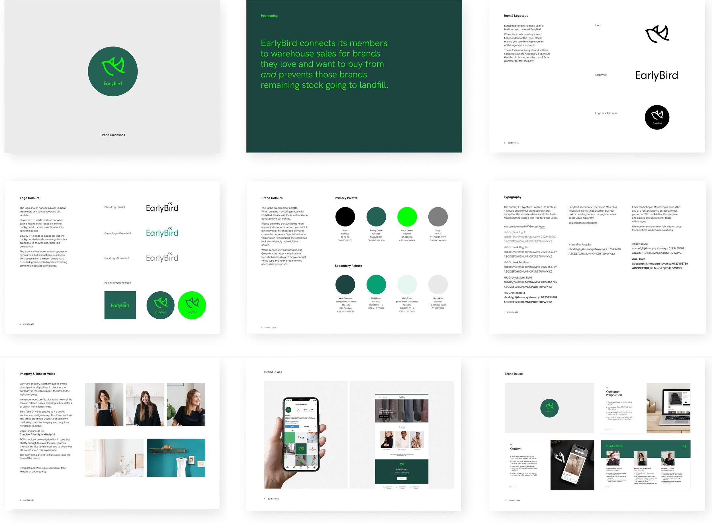 EarlyBird came to M.I. Design as a start-up on recommendation from another client. Initially they wanted help bringing a presentation deck alive to help attract interest from potential clients to their concept of running sample and warehouse sales online. Following this, we were engaged to create new branding and work with web developers on creating a bespoke Shopify website to run their timed, sample sales.