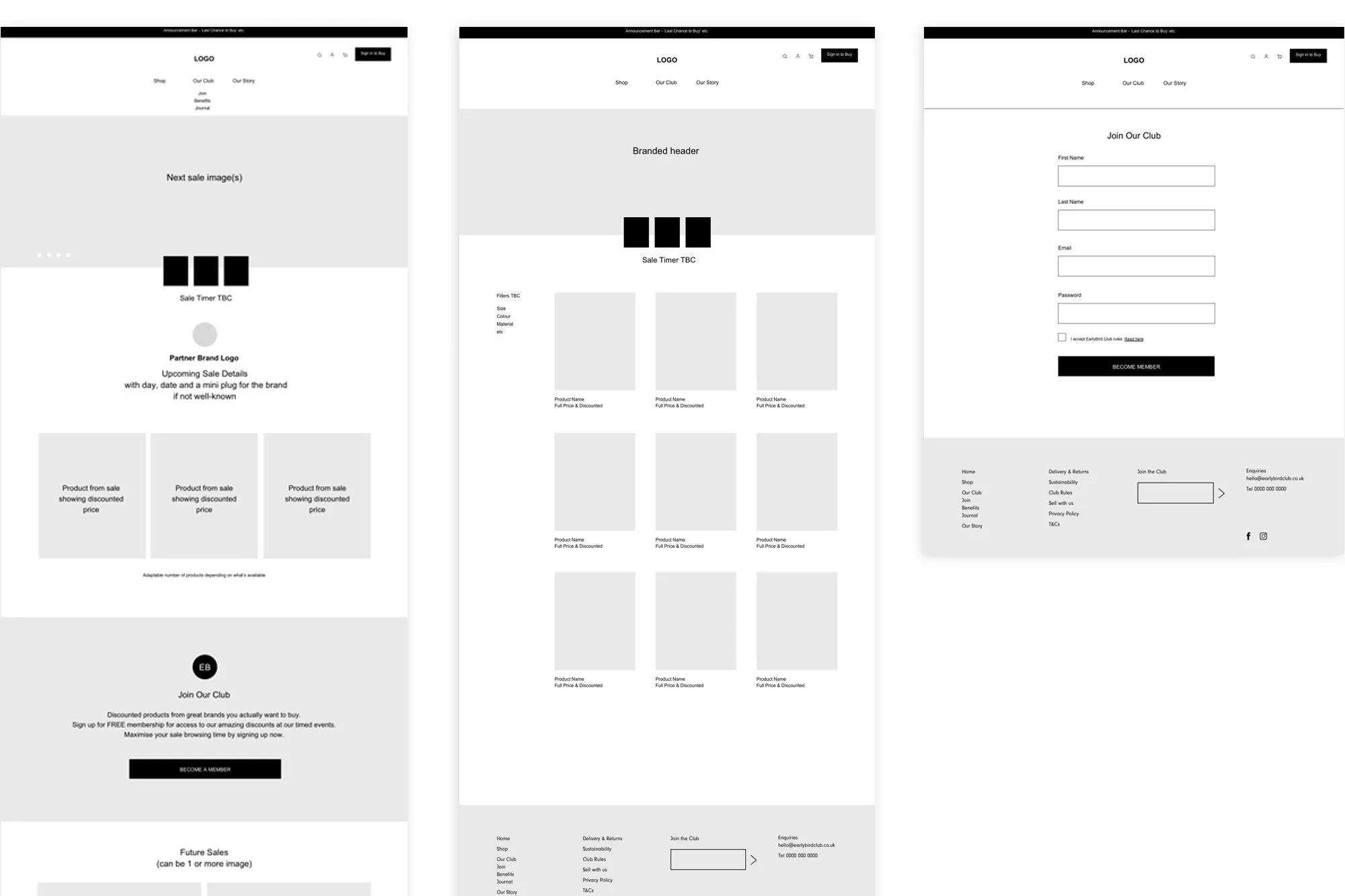We worked with the client to understand the functional needs of the website and the ensure there was a v. quick route to purchase for their timed sales. We investigated various e-commerce platforms and settled on Shopify as a robust e-commerce provider but various plugins were required in order to meet the functional requirements. We provided EB with a prototype to test with some potential users and made several amends before designing, building and testing the site before launch.